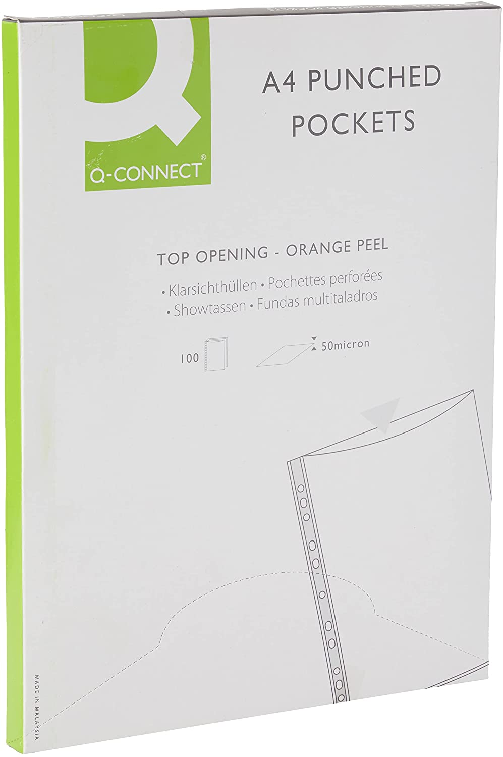 Q Connect Punched Pocket A4 50micro, Clear (Pack of 100)